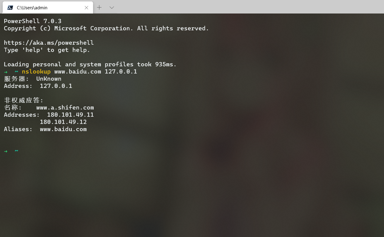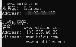 nslookup www.baidu.com 127.0.0.1