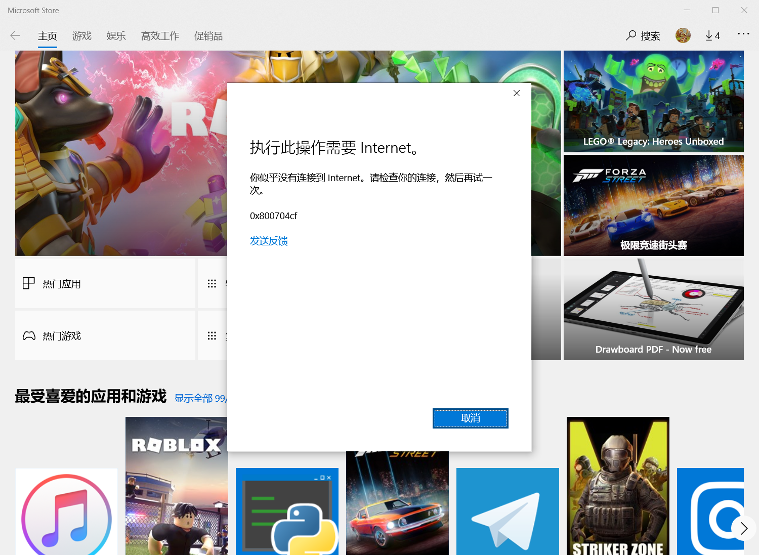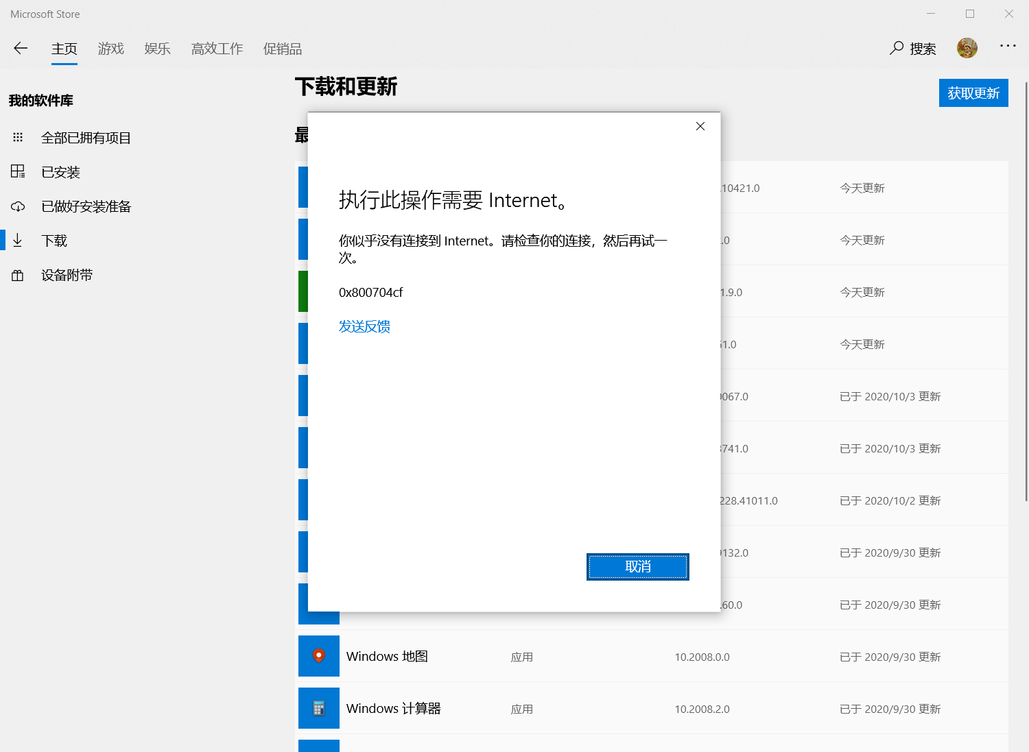 uwp联网正常,微软商店只有涉及到下载时会提示无网络连接,另外office套件也无法联网