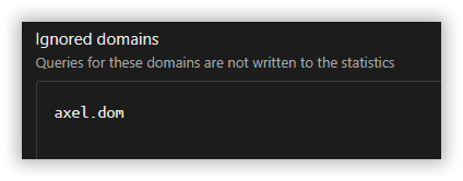 I configured my lan domain in the "Ignored Domains" and also reset statistics, but I'm still seeing info about local domain hosts in the homepage sections (top queried domains, top clients, etc.), is that normal?