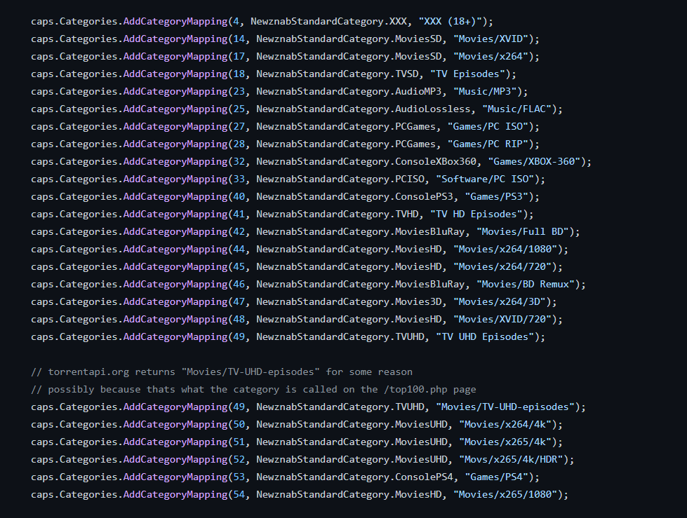 Categories Radarr gets - non-standard, not mapped, and generally janky.