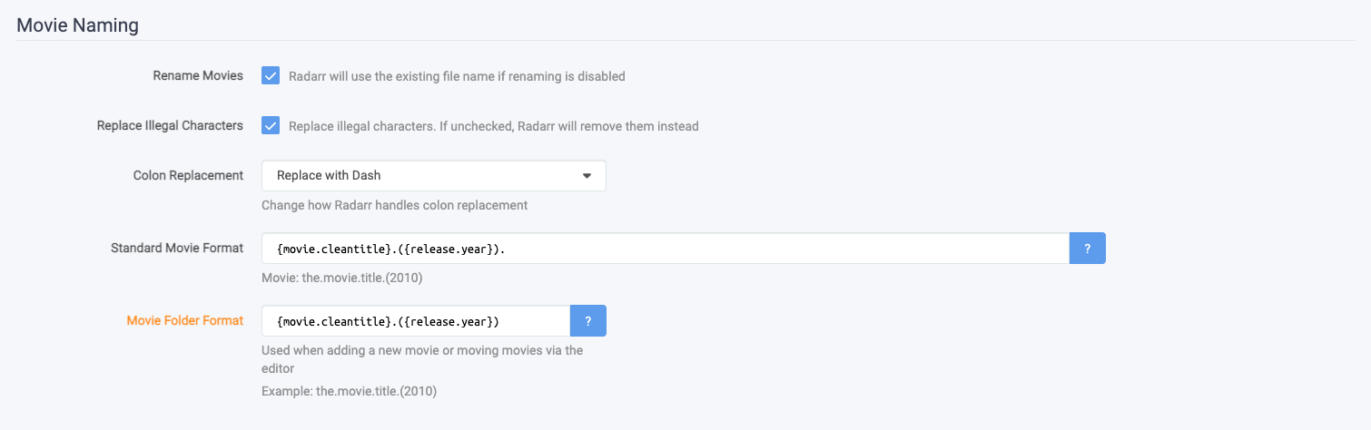 {Movie CleanTitle} should produce file and folder names with no special characters.