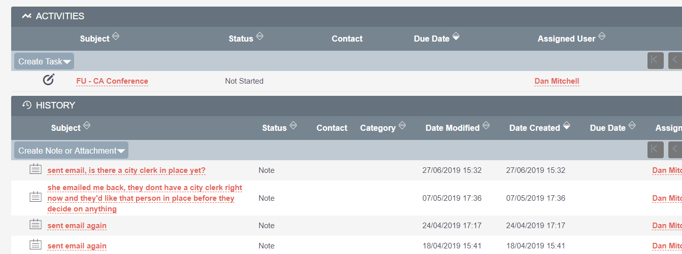 We open the tab "Activities" and "History"
