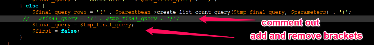 line 878: $final_query = '(' . $tmp_final_query . ')'; change to $final_query = $tmp_final_query;