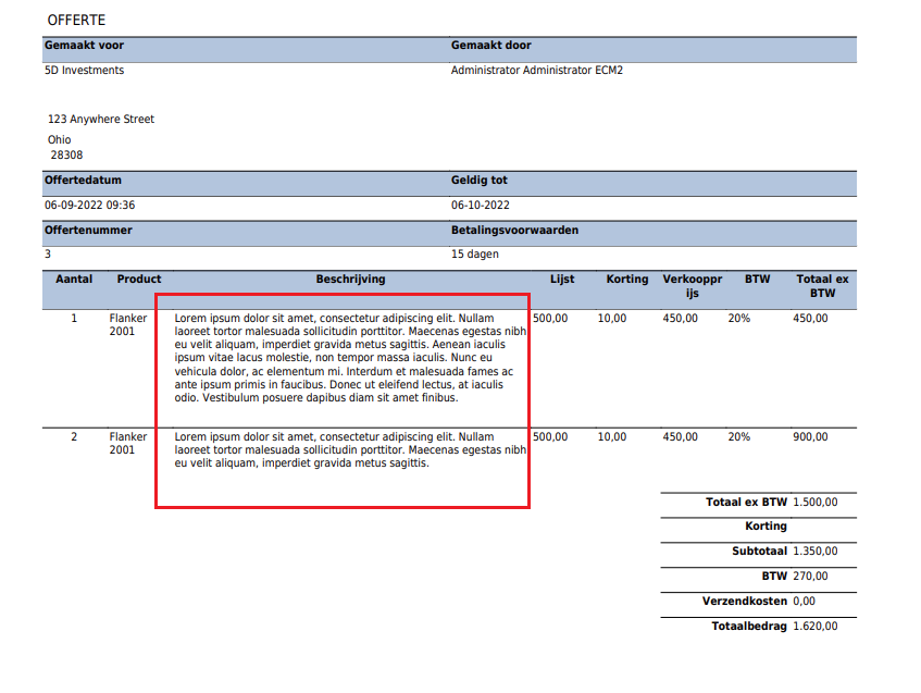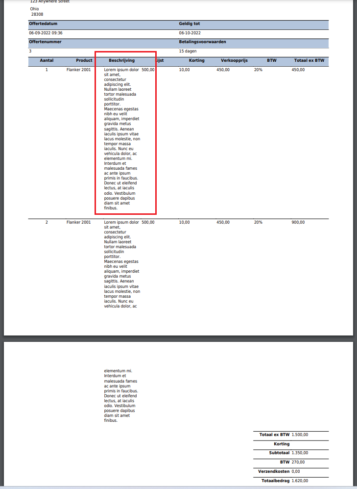 If you want to use a standard PDF-Templates for a Quote and you have a longer text for field "description" in a html-table, it sets the content on top of each other. I thought that in the past the table was "more" flexible, because of specific CSS for the html-table. In the past the result was more like the picture below "Expected Behavior".