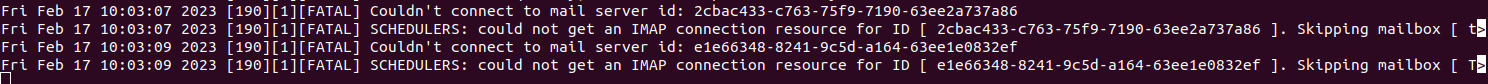"Could not get an IMAP connection resource for ID [mailbox ID]"