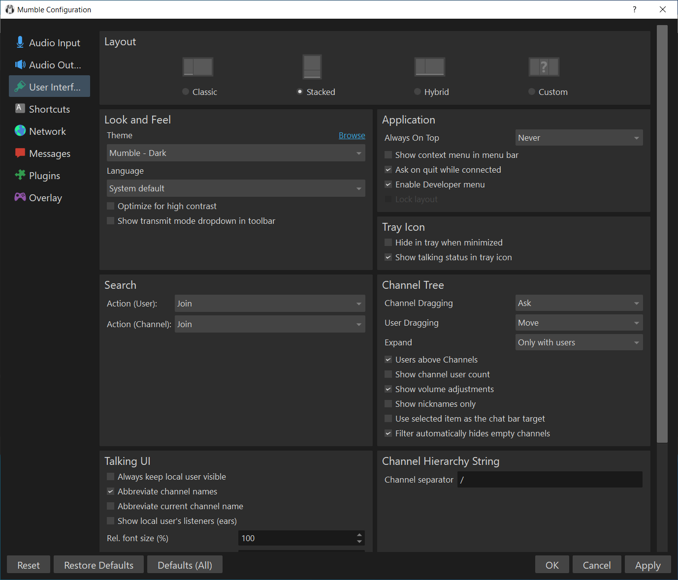 I would use Mumble's console, just to be sure.