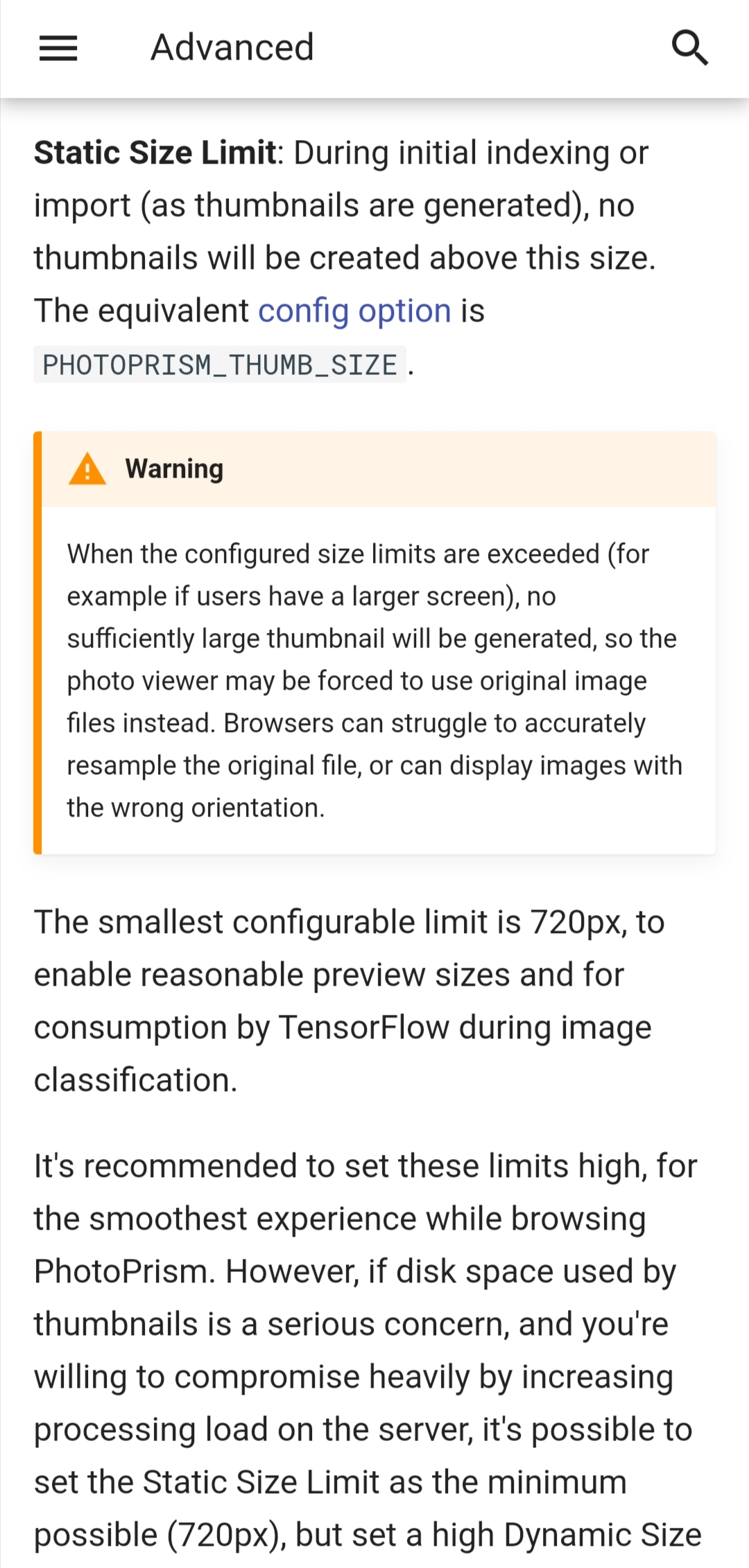 It is still not very clear to me. If I set PHOTOPRISM_THUMB_SIZE_UNCACHED & PHOTOPRISM_THUMB_SIZE to 720, does it not just mean that the generated thumbnail it saves is max 720 and that the generated dynamic render is max 720?