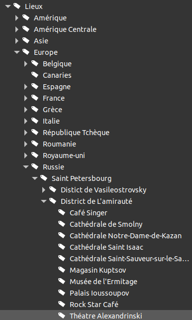As @wonx, most of my photos are tagged, I use Shotwell on Linux and there is also a tree of tags. This is very handsome as when tagging a monument for example it includes the city, the country, the continent, ...