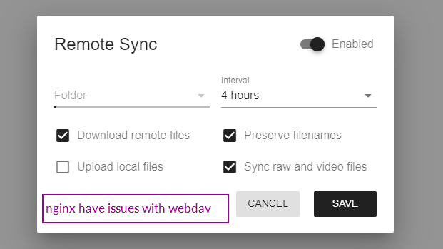I propose to put notice in sync options window to warn users about sync issues where You connect to nextcloud through webdav and NC is using Nginx.