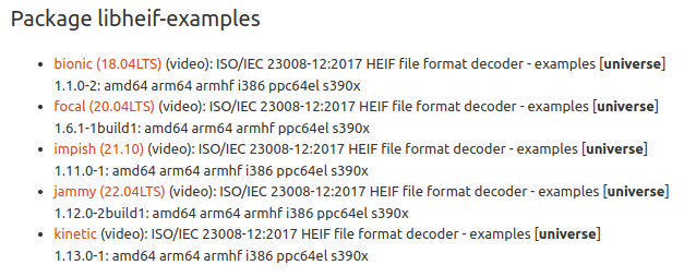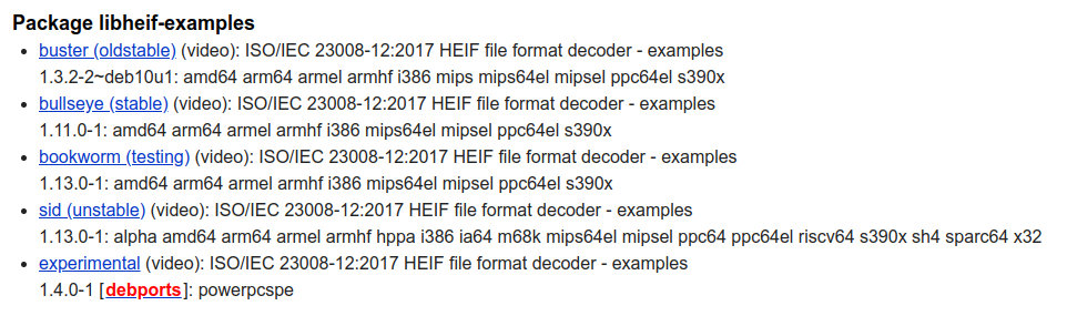 libheif-examplesbelow. It would help us if you could test these with your files so we know if anything has changed and maybe even what...Debian