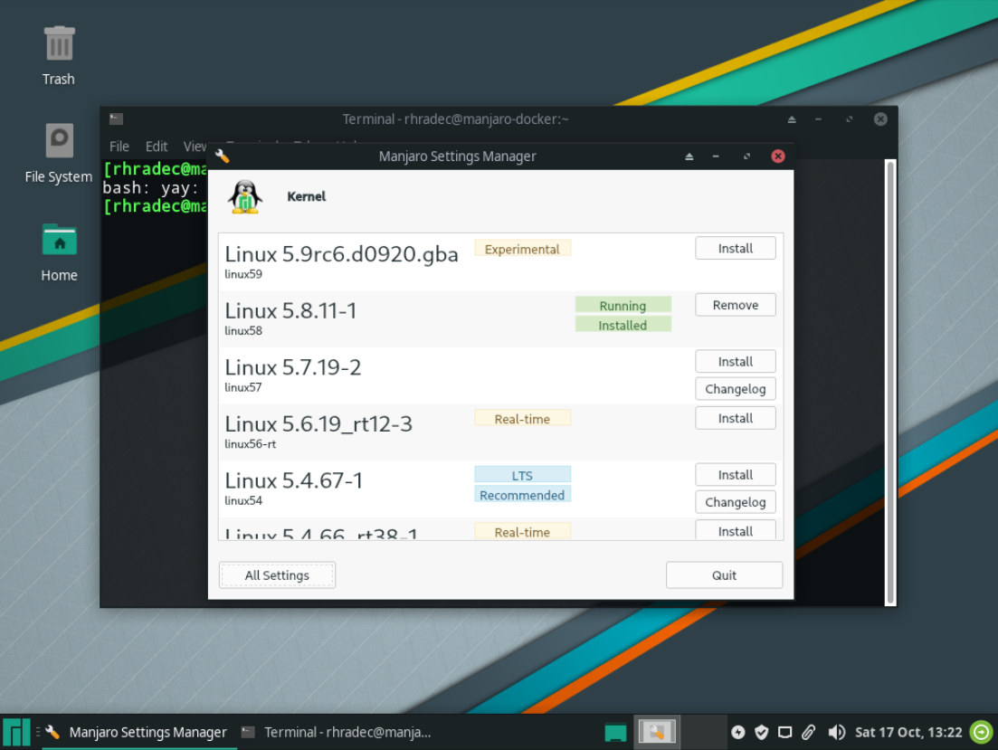 Majaro is up2date, and the default kernel is 5.8.11-1. It doesn't have the 5.8.14 in the list to be installed, but it does have a experimental 5.9: