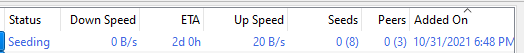If you download all files/folders, once the item is moved to Seeding, the ETA column will immediately switch to 1d 23h and continue to countdown normally.