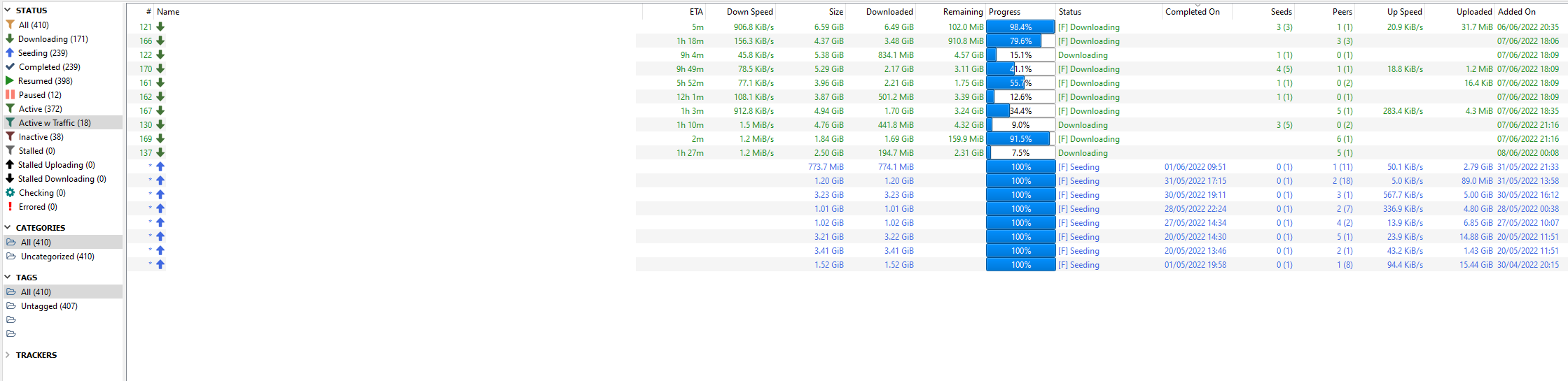 isActive()is used in any core stuff (and can't be changed because of it). If it is, i would add another method that's intended only for GUI and use that instead for the Active filter. We can't have torrents be considered active solely based on their state e.g. with "Forced" states.@itlezy commented on GitHub (Jun 8, 2022):