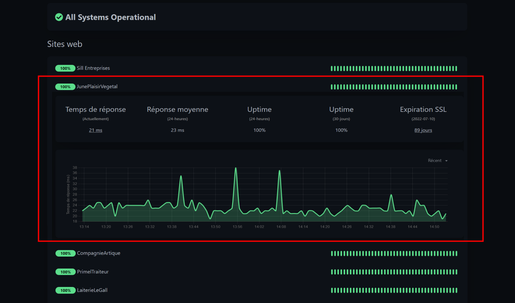 Have at least basic information such as response time, average response time, uptime