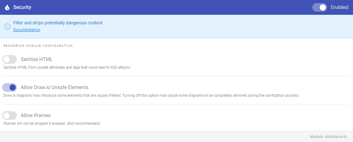 Administration→Rendering→HTML→Security→Sanitize HTML@grandixximo commented on GitHub (May 31, 2020):