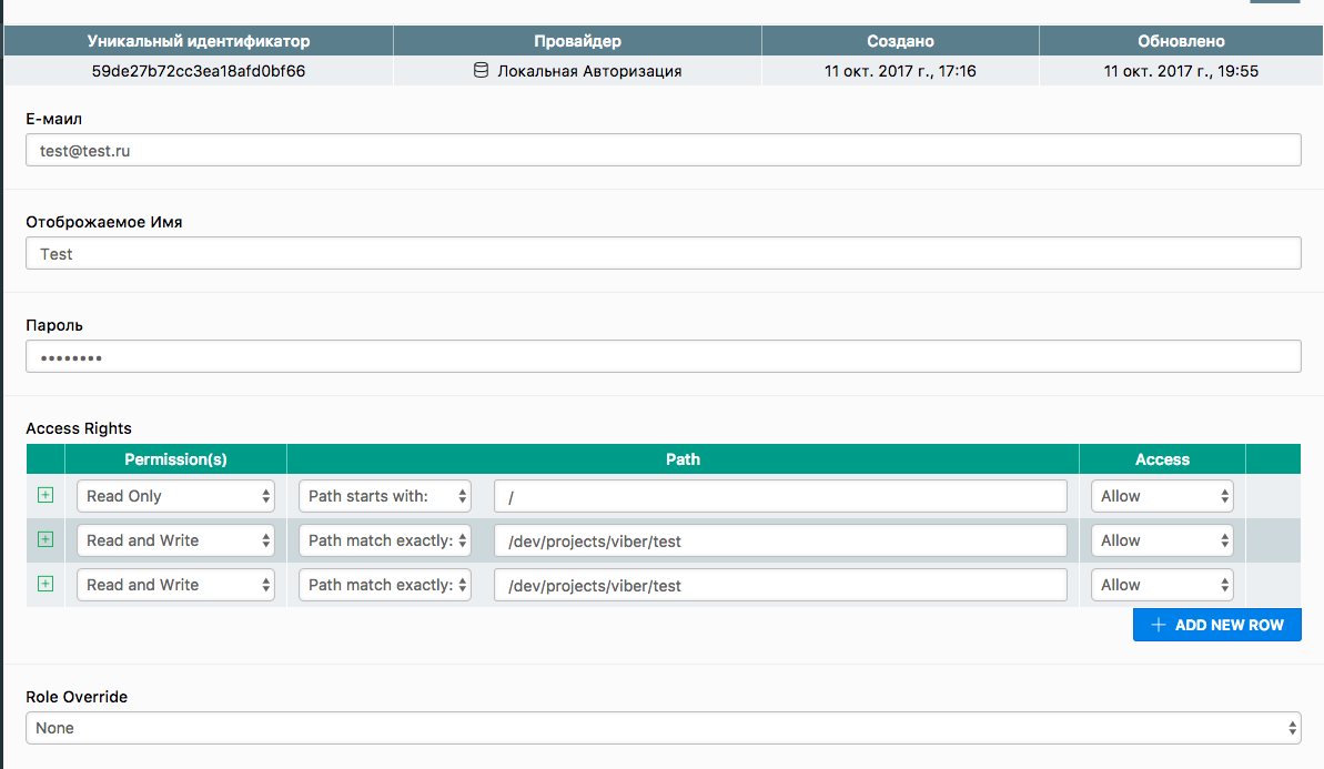 I added user and make his permissions.